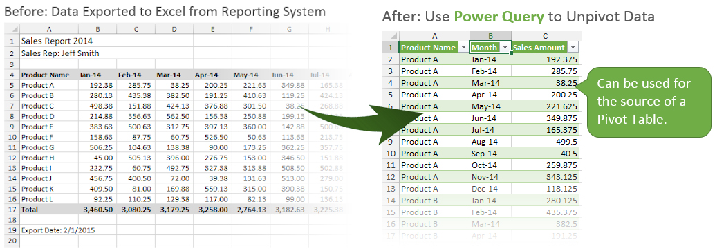 Using Power Query, you will be able to convert this data, into the desired results within seconds.