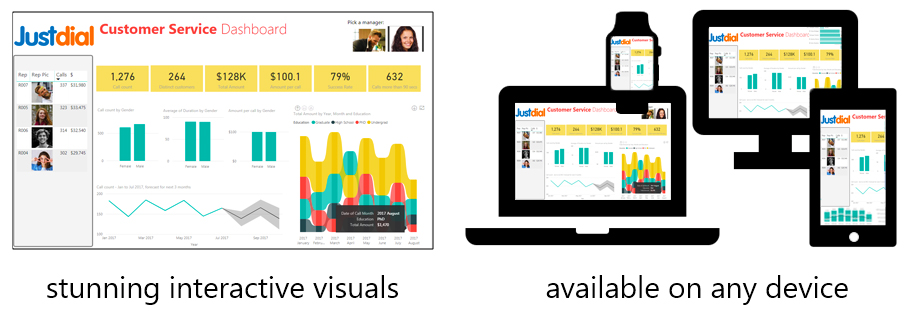 These dashboards would have Data from multiple data sources. Dashboards created in Power Bi can also be shared using the Power BI Service Features.